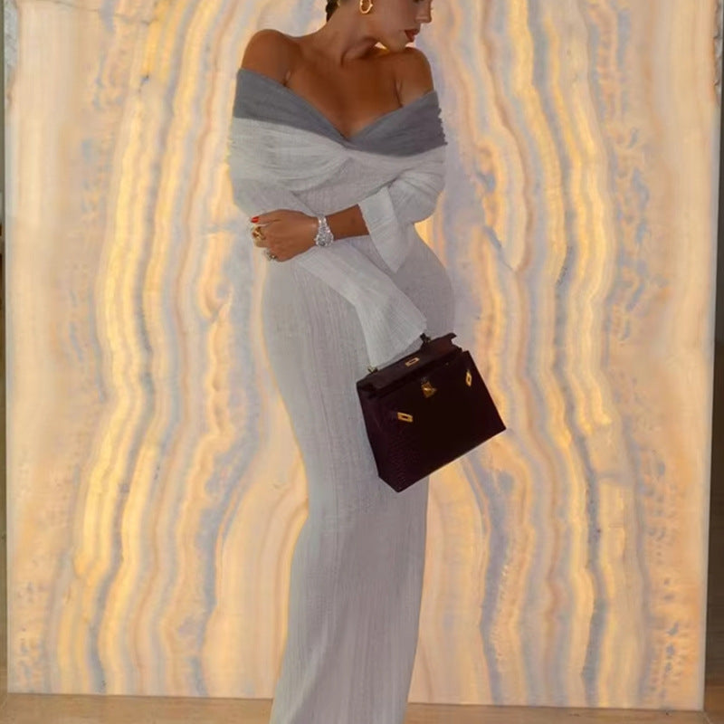 Women Figure-hugging Evening Dress with Off-Shoulder Design and Long Sleeves Ivyshape