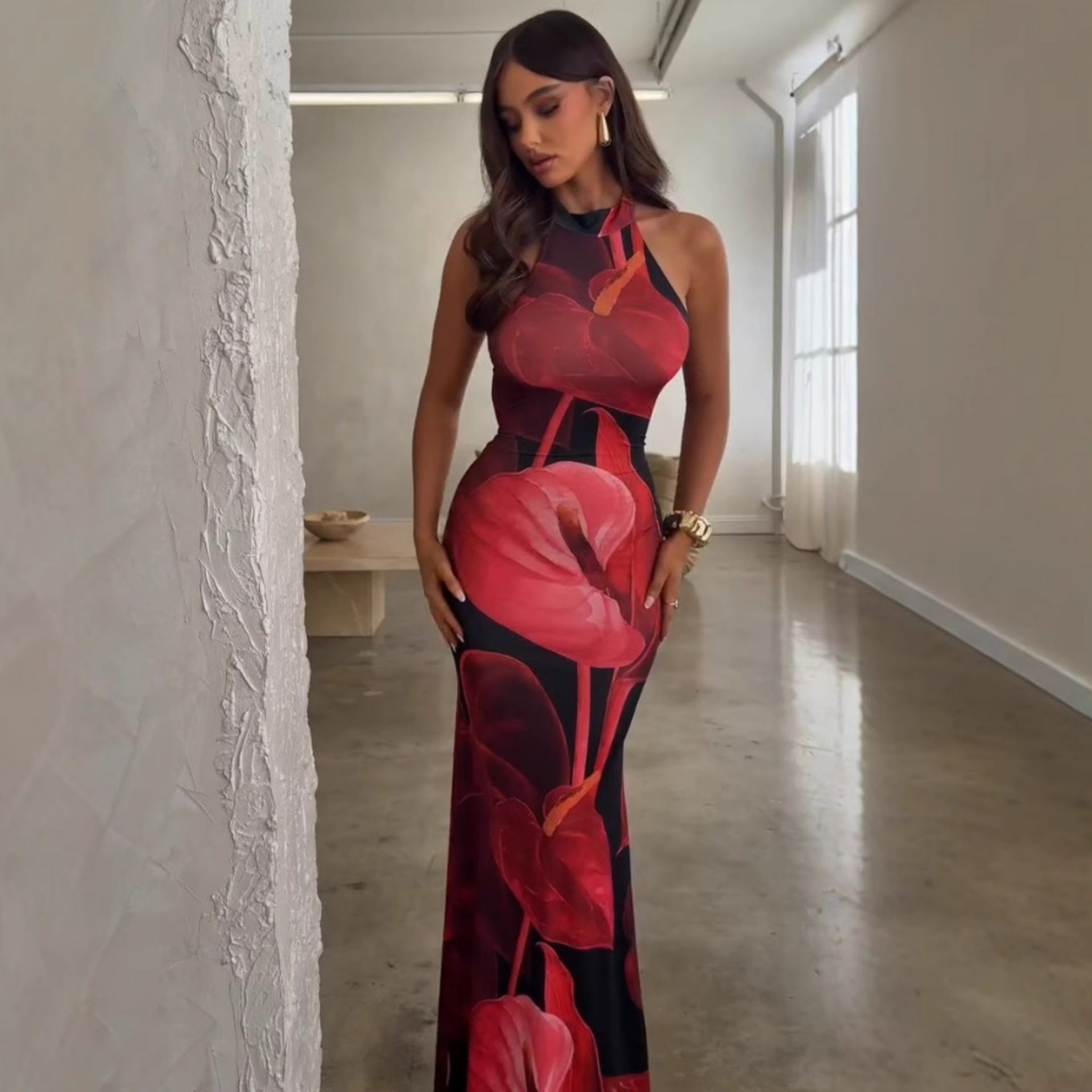 Discover our exclusive women's figure-hugging maxi dress with a floral high-neck design from Ivyshape. This elegant dress stands out with its striking floral design, adding a fresh and fashionable touch to your look.