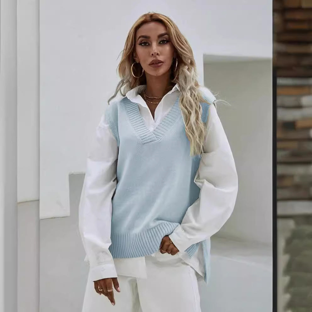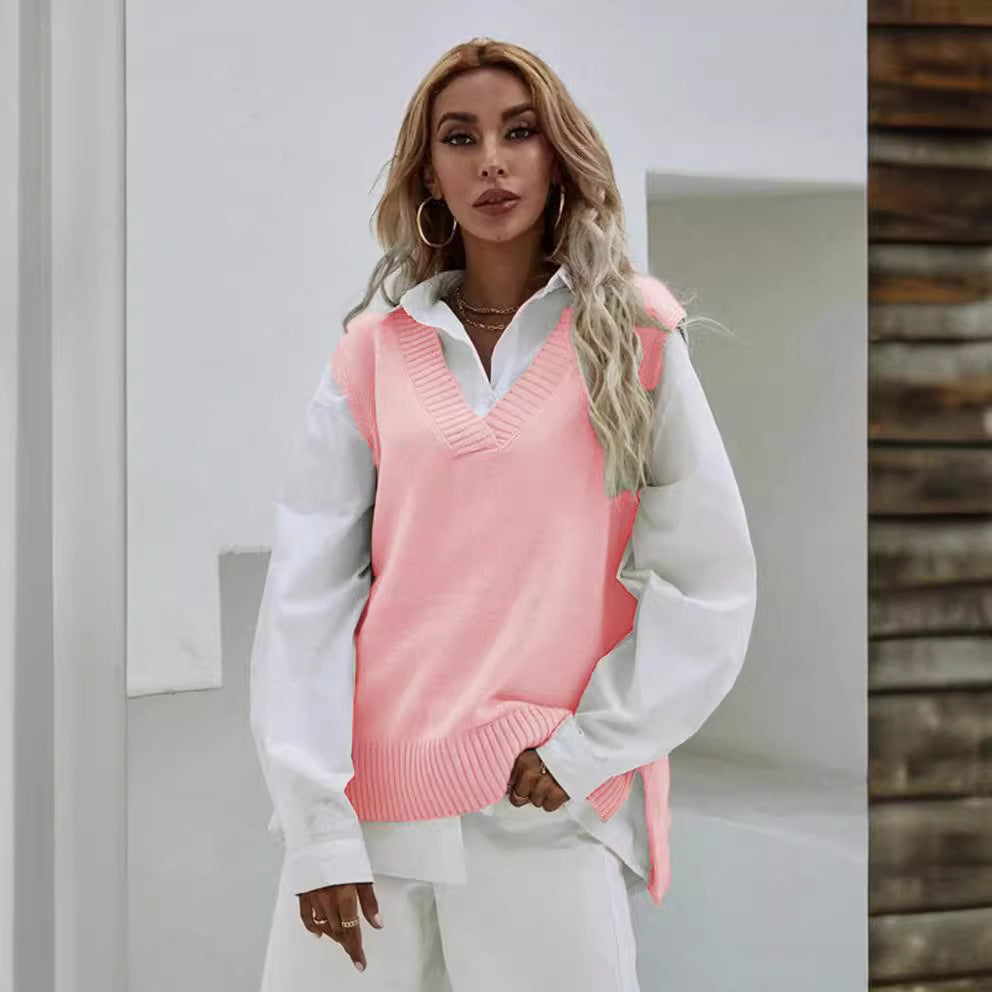 Combine this fashionable knit vest with a classic blouse and fitted pants for an elegant look or wear it over a T-shirt for a casual style. A must-have for fashion-conscious women!