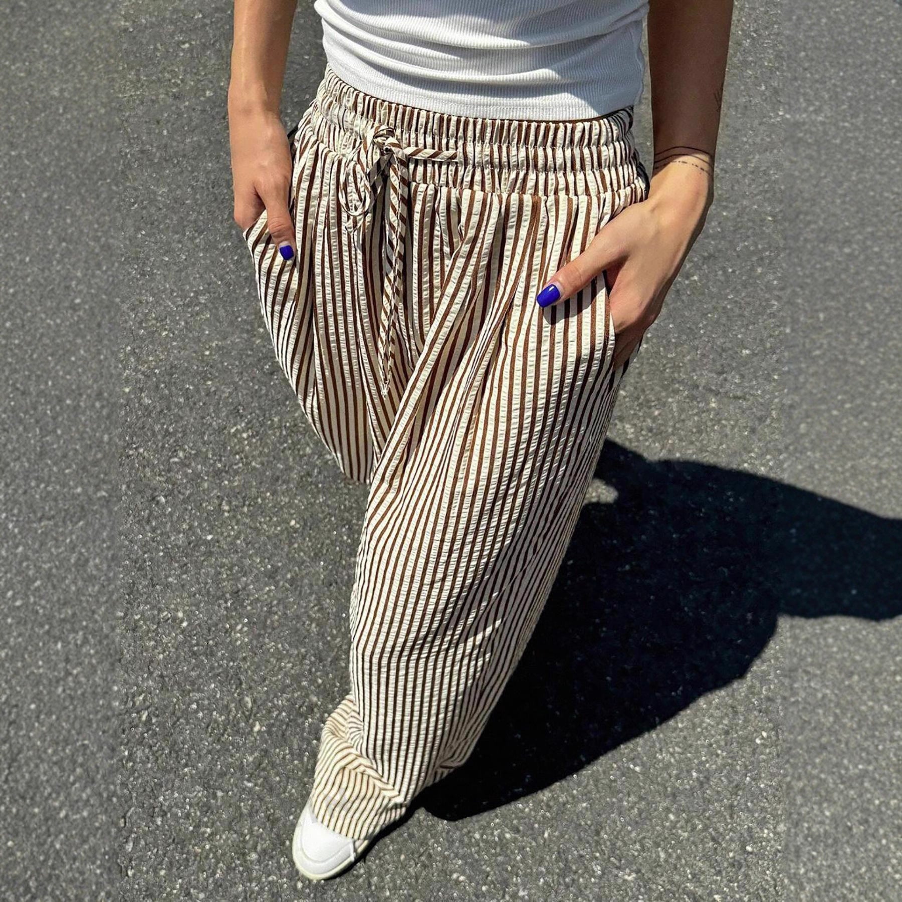 Discover the perfect combination of style and comfort with our women's casual pants in a relaxed boho style. These pants stand out with their modern striped design and pleasant feel, ideal for everyday wear.