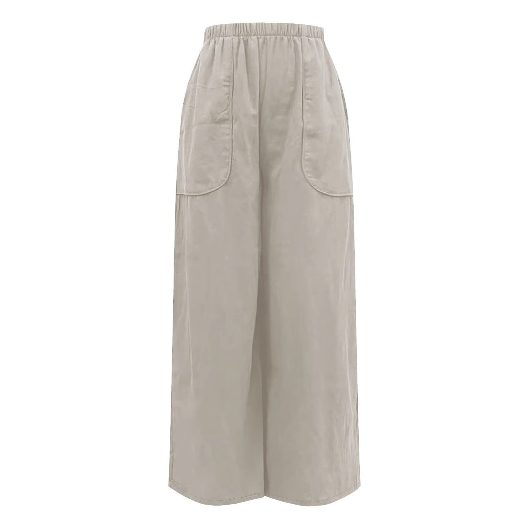 Women's lightweight, loose-fitting linen trousers with elastic waistband and practical pockets Ivyshape