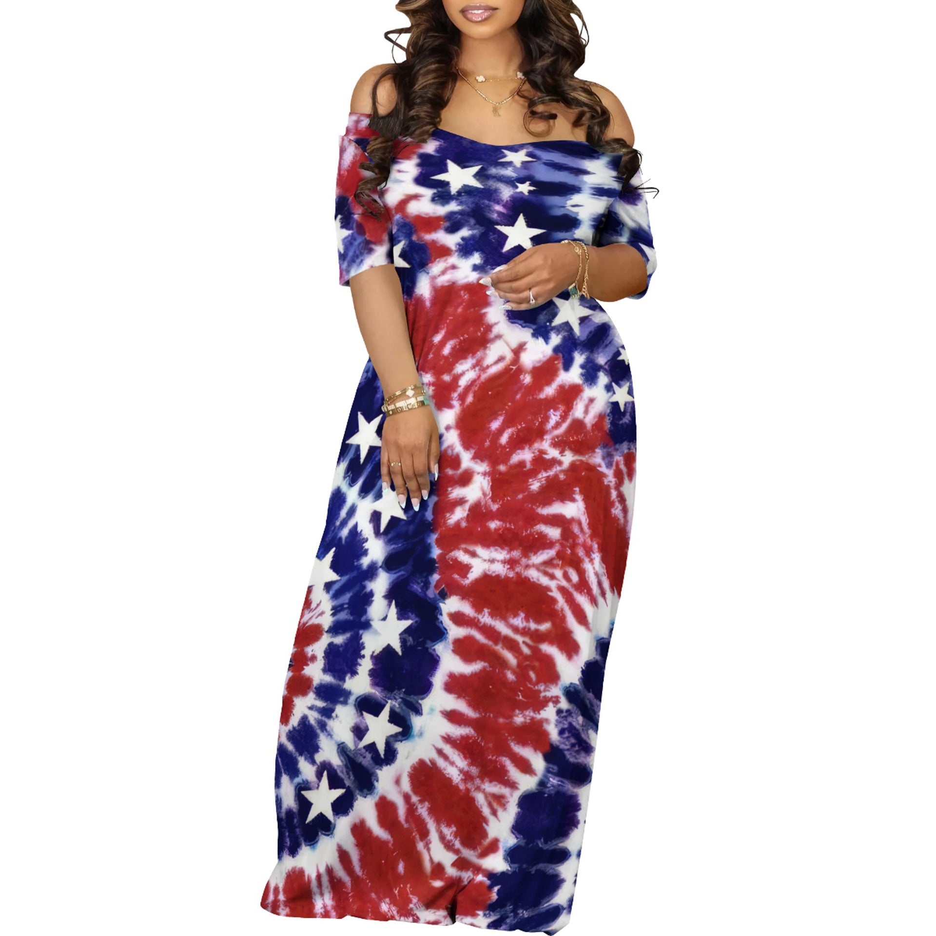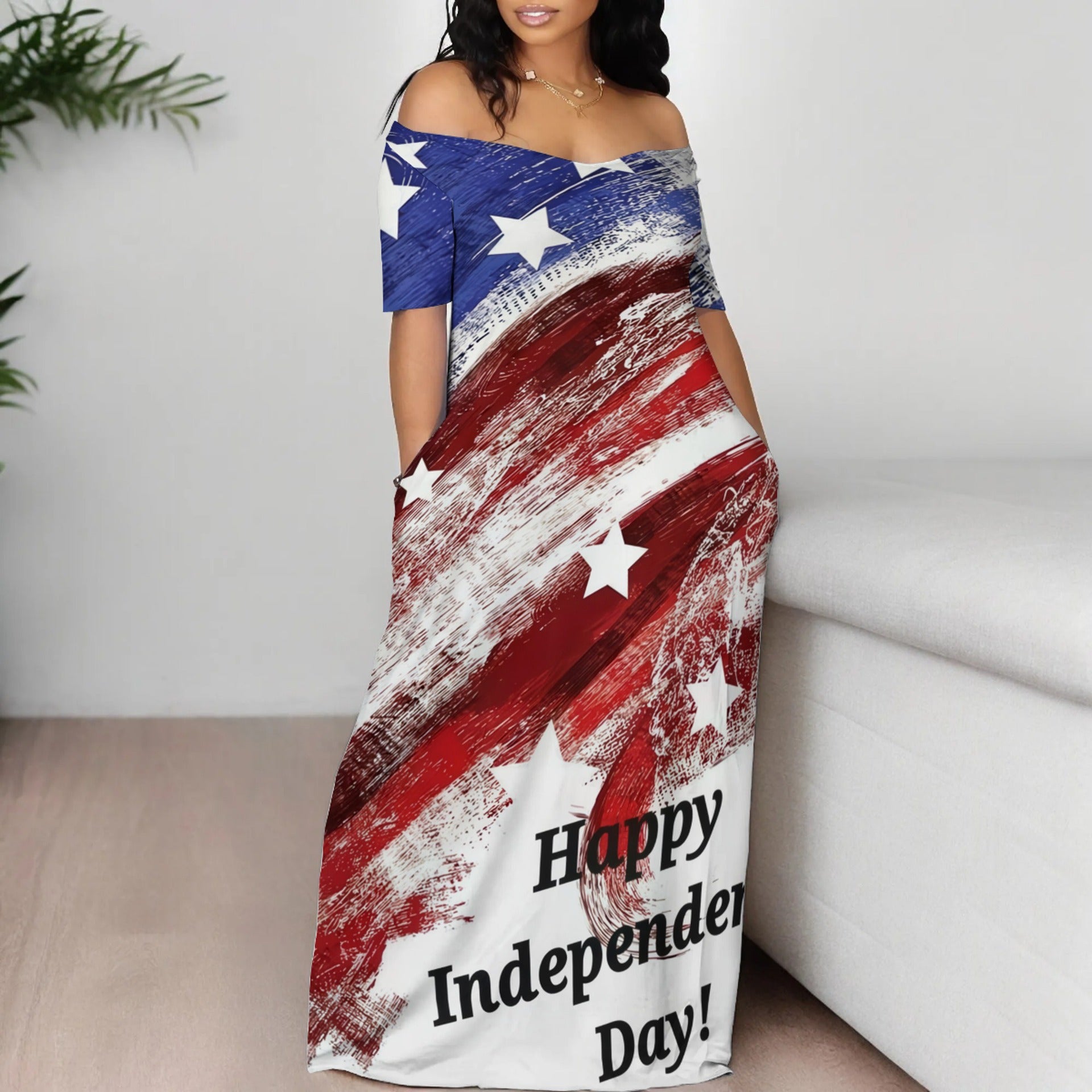 Women's Off-Shoulder Maxi Dress in Creative Graphic Design and Comfortable Fit Ivyshape