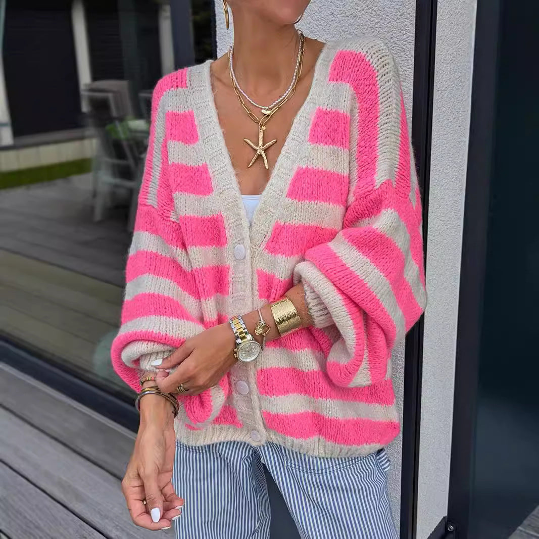 Women Oversized Cardigan with modern striped pattern and casual cut Ivyshape