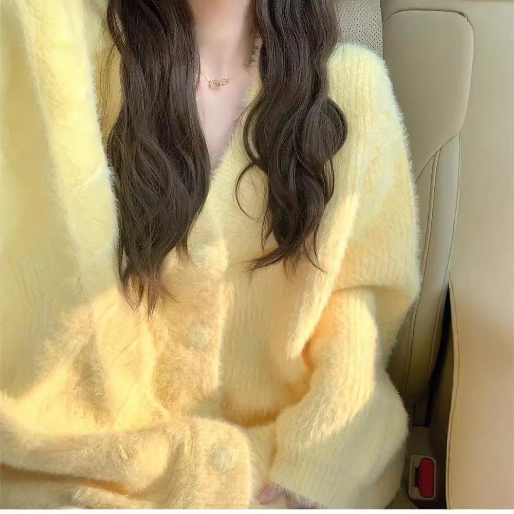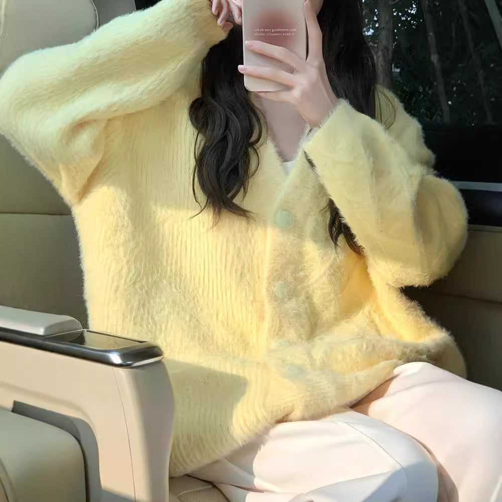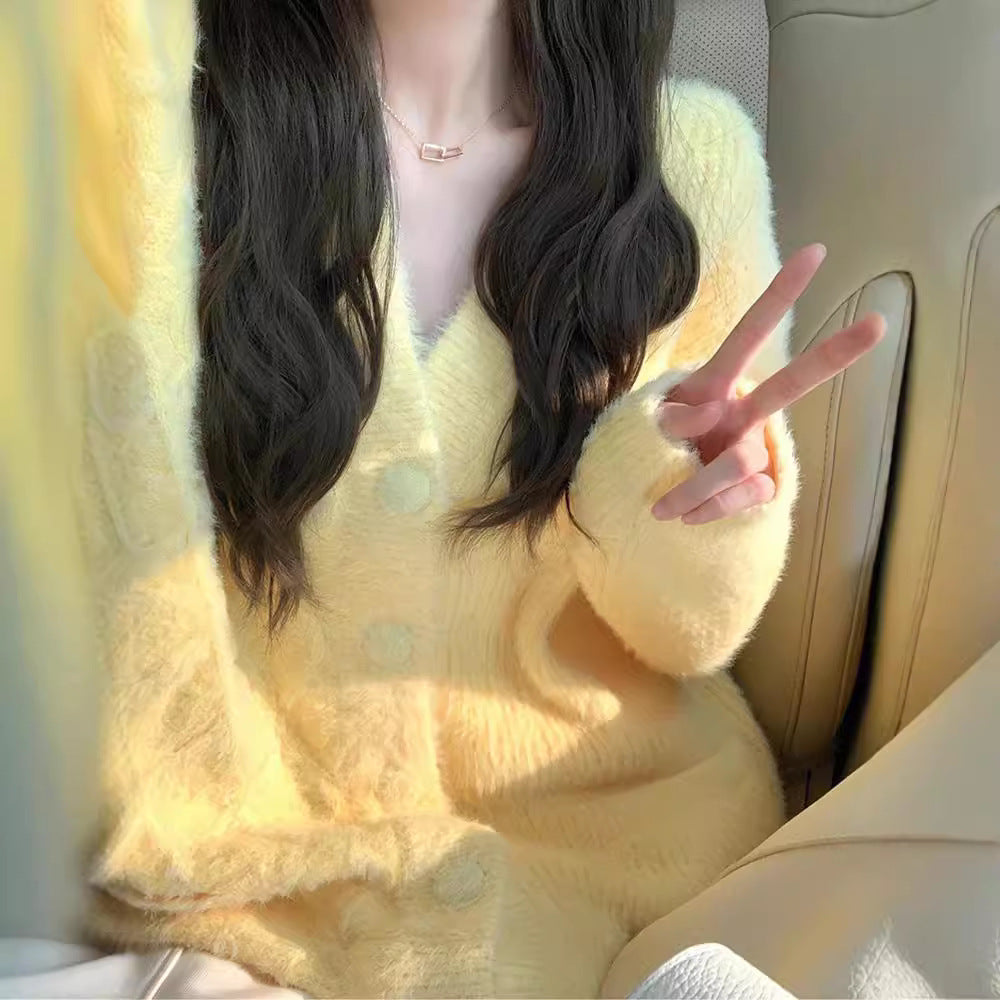 Women's oversized cardigan with soft fleece and special button details Ivyshape