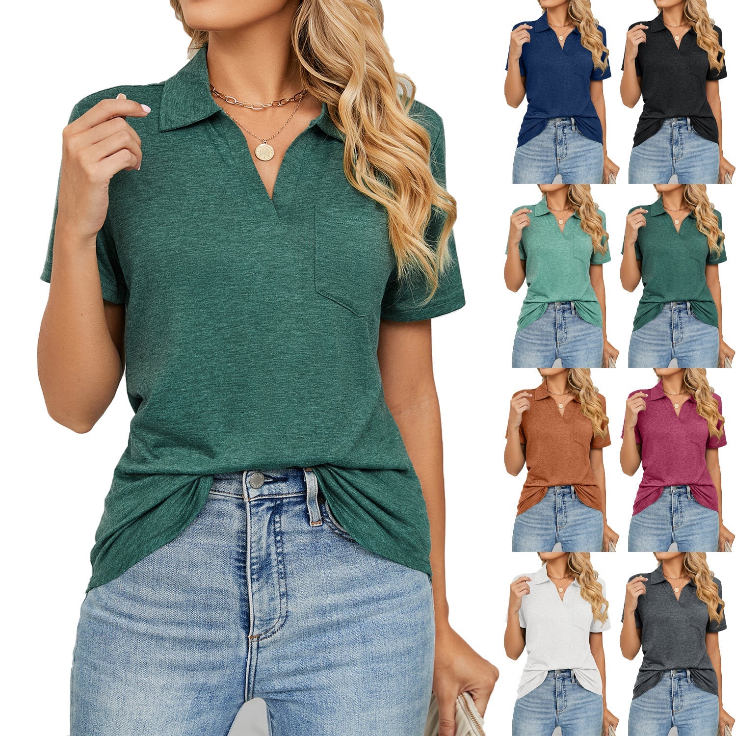 Women's polo shirt with fashionable V-neck and chest pocket Ivyshape