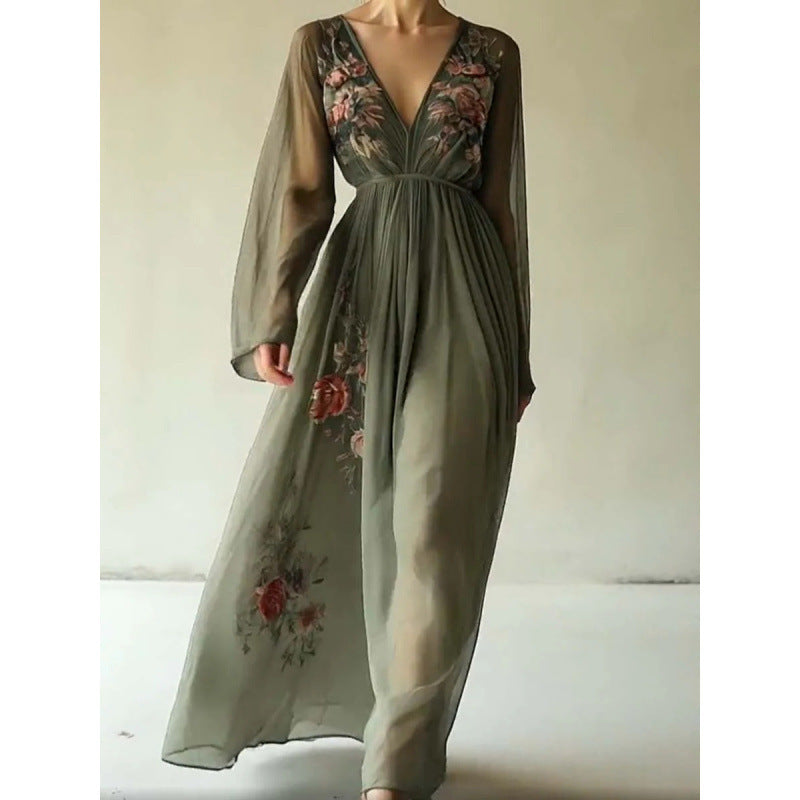 Women Embroidered Chiffon Maxi Dress Ivyshape