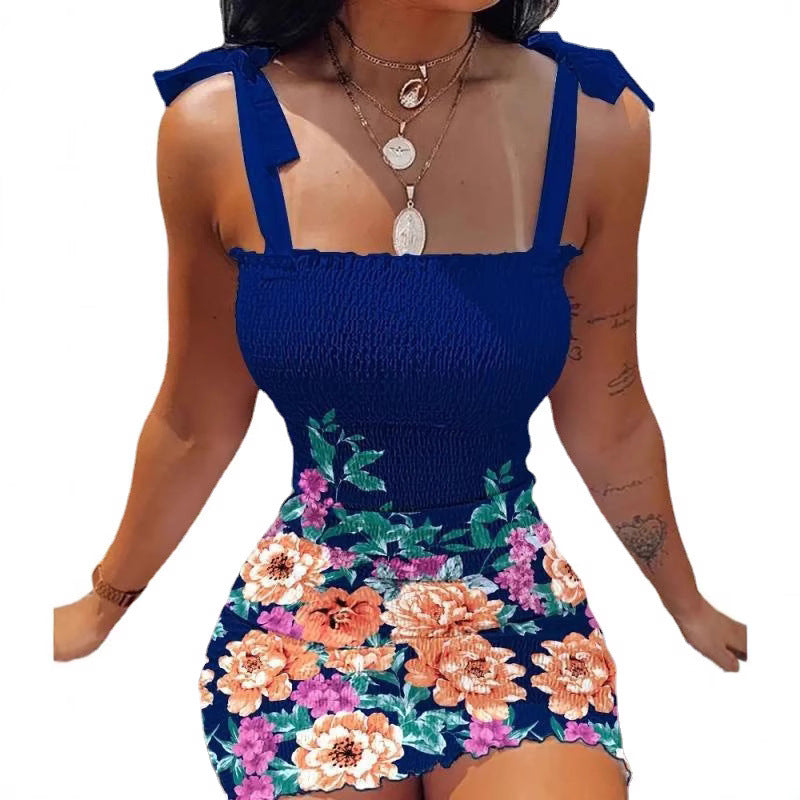 Women’s short dress with floral print and lace straps Ivyshape