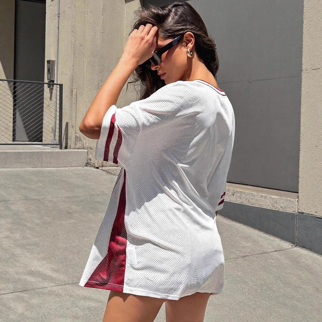This versatile jersey pairs excellently with jeans, shorts, or sport leggings, making it the perfect piece for any athletic occasion or leisure activity.
