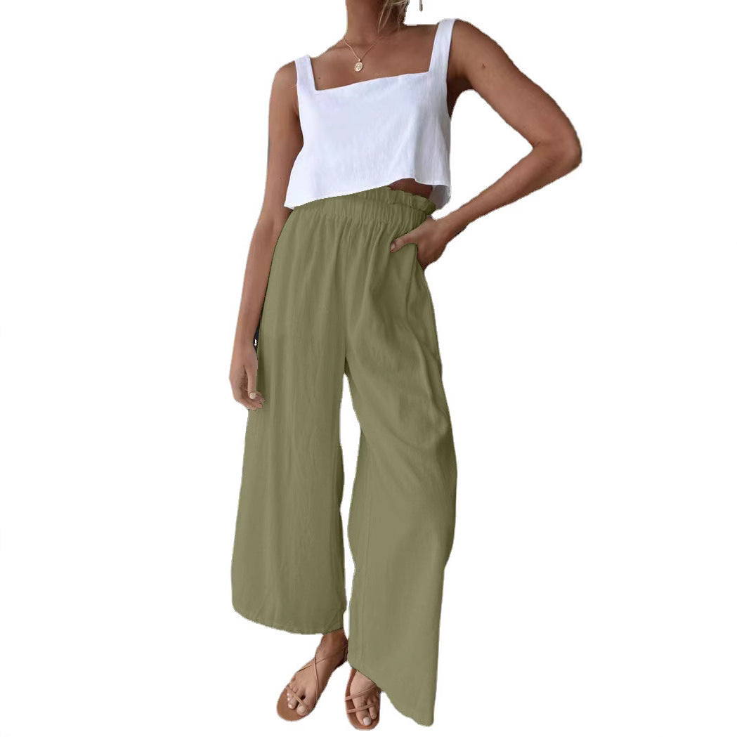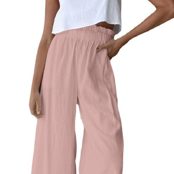 Women's Wide Palazzo Pants with Elastic Waistband and Flowing Cut Ivyshape