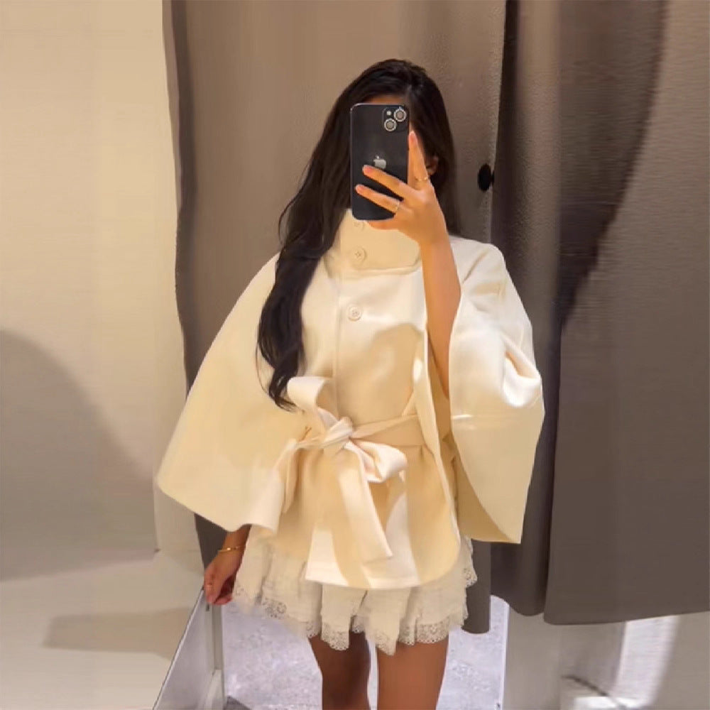 Women's wrap jacket with high collar line and wide sleeves Ivyshape