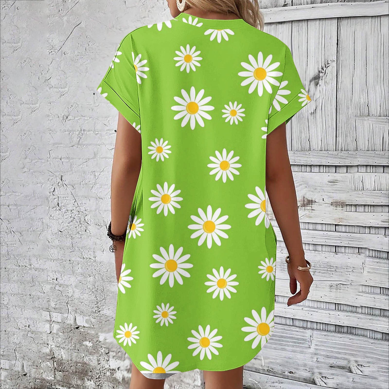 Discover our casual summer dress with a cheerful floral pattern, perfect for warm days. This dress impresses with its comfortable cut and practical pocket solution that offers you additional comfort.