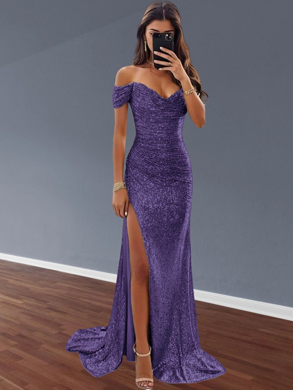 Experience ultimate glamour with our Women's Glamorous Evening Gown featuring a sparkling accents from Ivyshape. This exquisite dress combines elegance with a touch of extravagance, perfect for festive occasions.