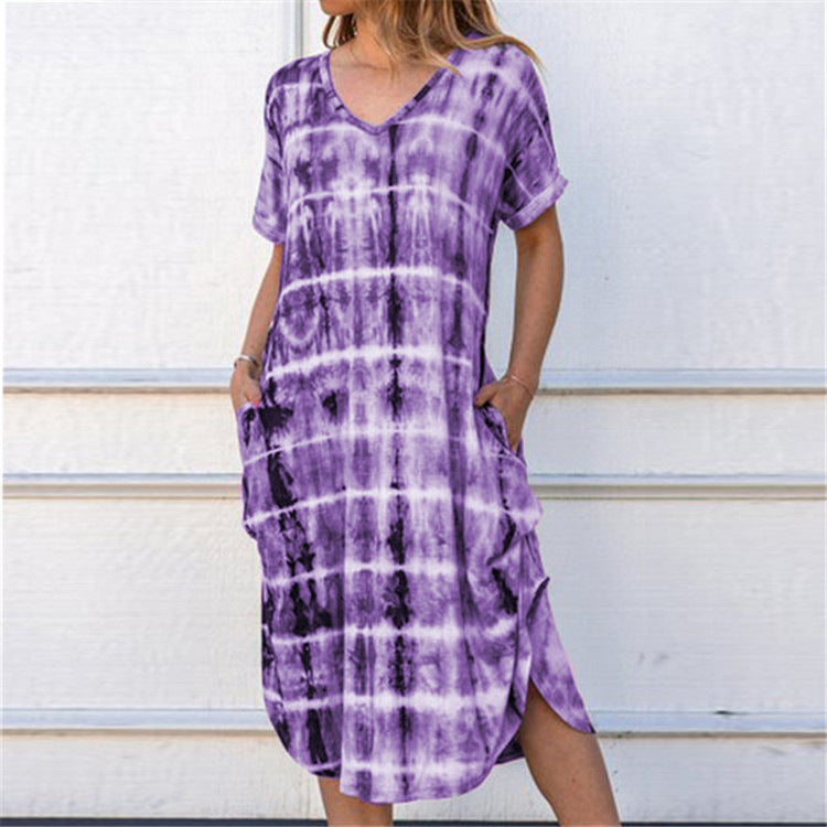 Ladies Loose Maxi Dress with Practical Pocket Design and Unique Tie-Dye Pattern Ivyshape